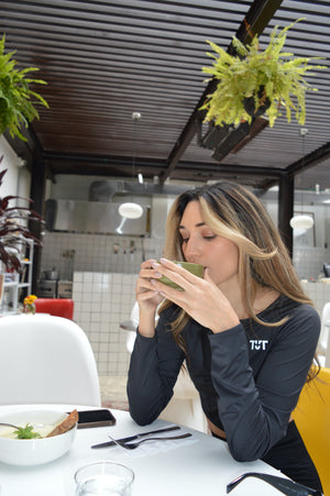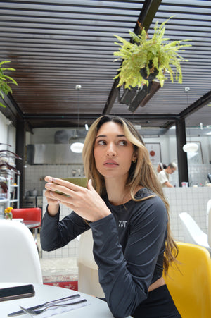 Manga larga corta con tencología Dry-fit que brinda protección solar y antibacterial. Modelo usando talla Xs-S.