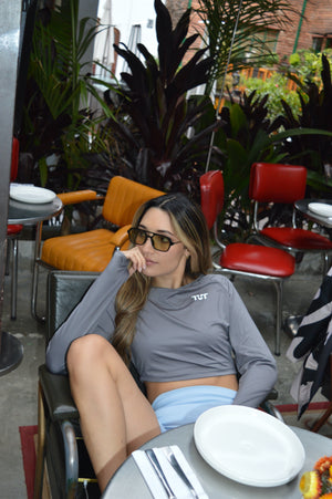 Manga larga corta con tencología Dry-fit que brinda protección solar y antibacterial. Modelo usando talla Xs-S.