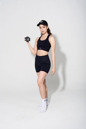 Biker con tecnología Seamless tiro alto, diseño moderno que moldea la figura, con la suavidad y comodidad de nuestros hilos. Modelo usando talla Xs-S.