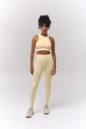 Legging con tecnología Seamless y tiro alto, diseño clásico con leves relieves que otorga un look elegante y fresco. Talla única.