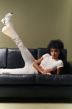 Legging con tecnología Seamless y tiro alto, diseño moderno moda campana que brinda un look fresco y cómodo que favorecer la silueta femenina. Talla única.